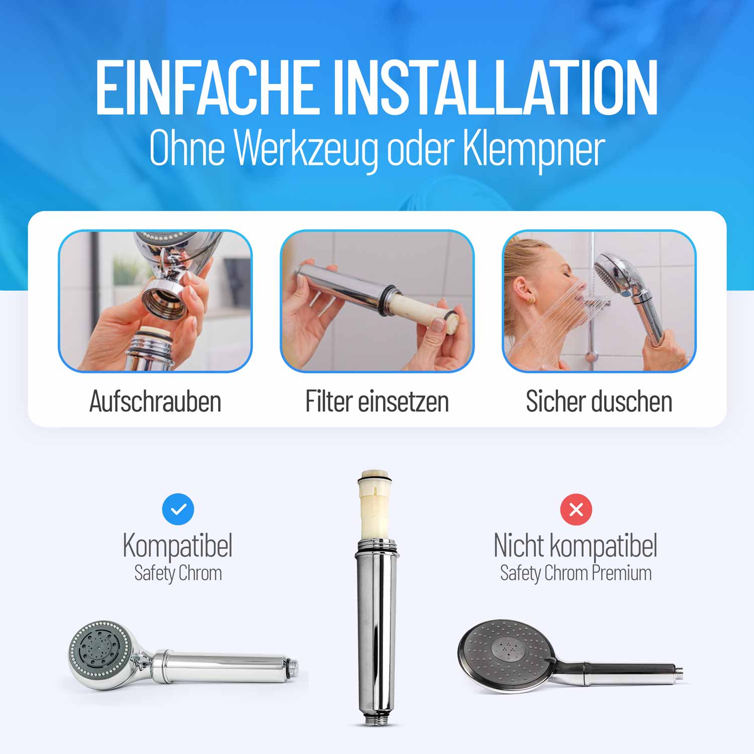 Austauschfilter („Wechselgriff“) für den Safety Chrom PREMIUM Duschkopf finden Sie > hier