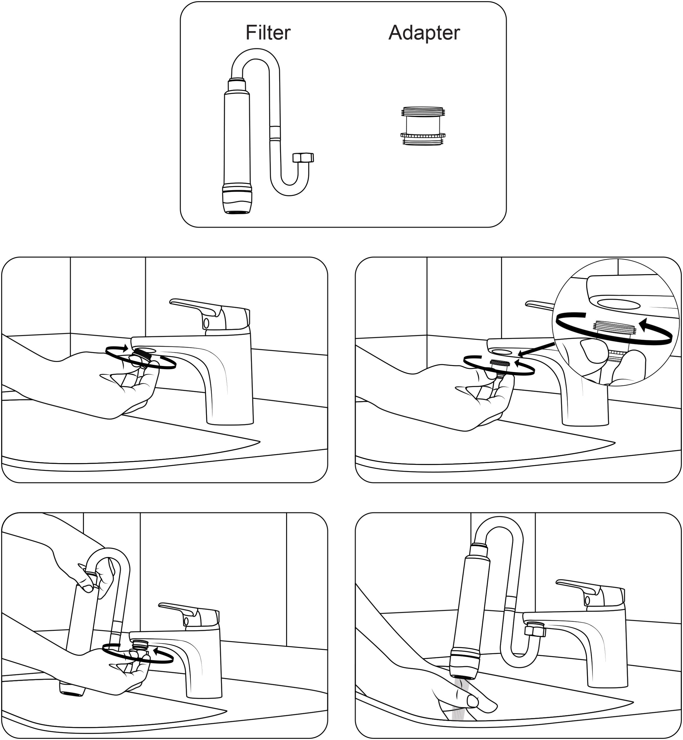 Strahlregler von der Armatur entfernen, Adapter und Legionellenfilter anschrauben. Fertig!