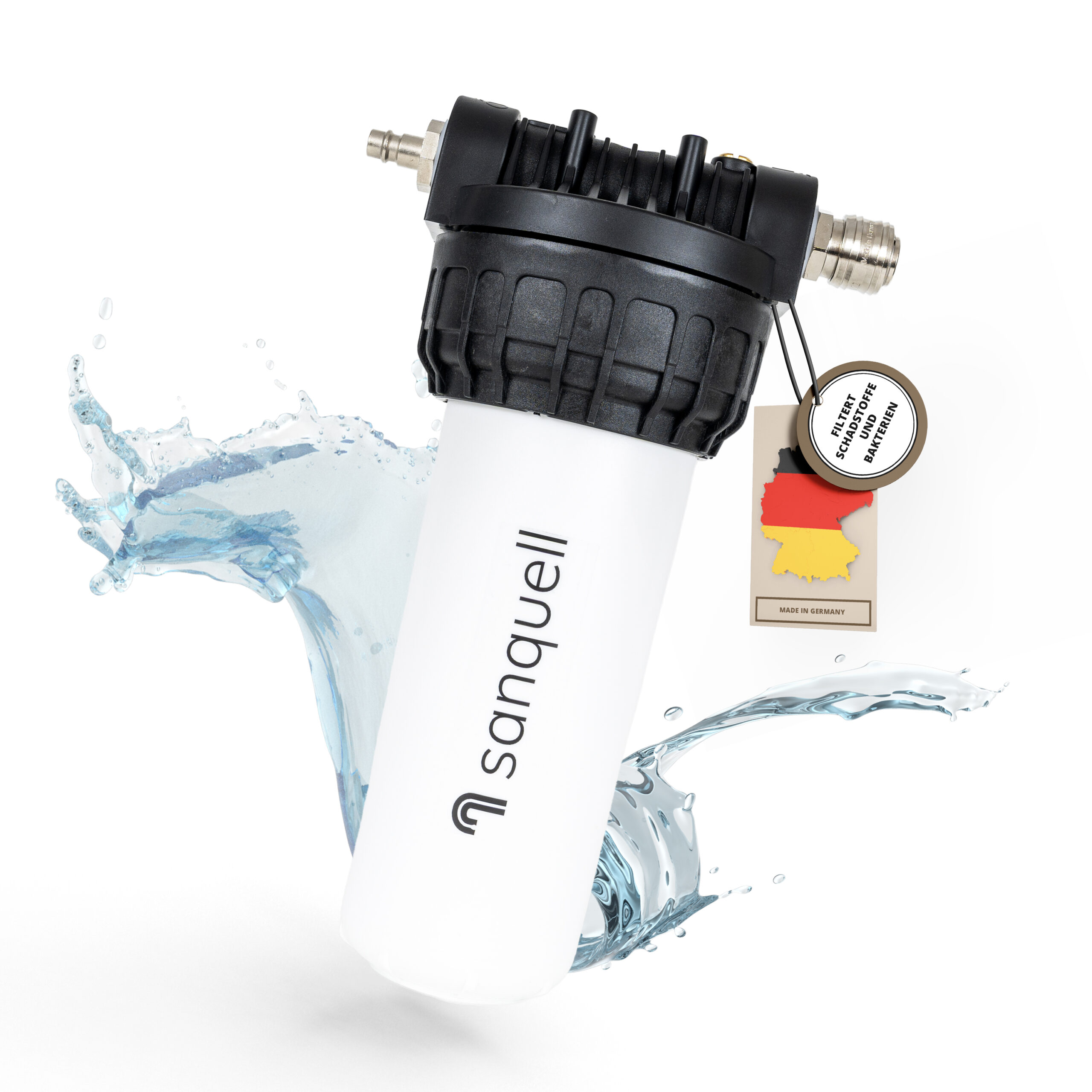 Sanquell setzt genau hier an: Der Superpure‑Filter entfernt Schadstoffe am letzten Meter, unmittelbar bevor du es trinkst.