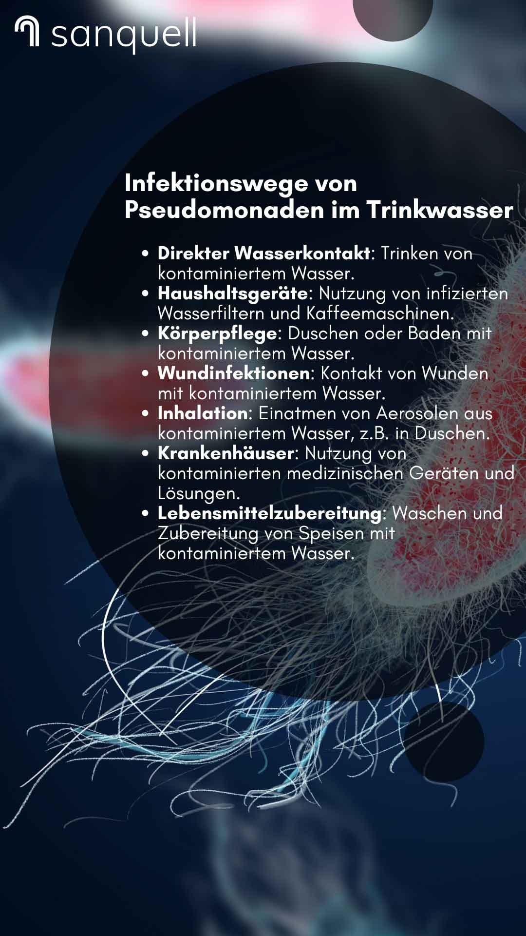 Für gesunde Menschen geht in der Regel keine Gefahr von den Pseudomonaden im Trinkwasser aus. Wer jedoch zeitweise gesundheitlich angeschlagen ist, trägt ein hohes gesundheitliches Risiko, sich in Wohnhäusern, beim Zahnarzt oder im Krankenhaus zu infizieren.